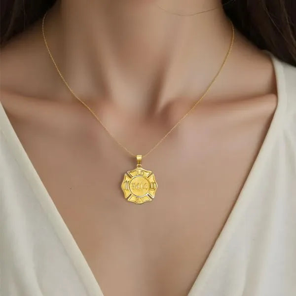 Personalized Firefighter Badge Charm Pendant with Number and Department