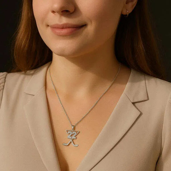 Sterling Silver Personalized Hockey Charm Pendant with Number