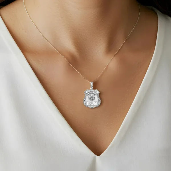 Personalized Police Detective Badge Charm Pendant with Number