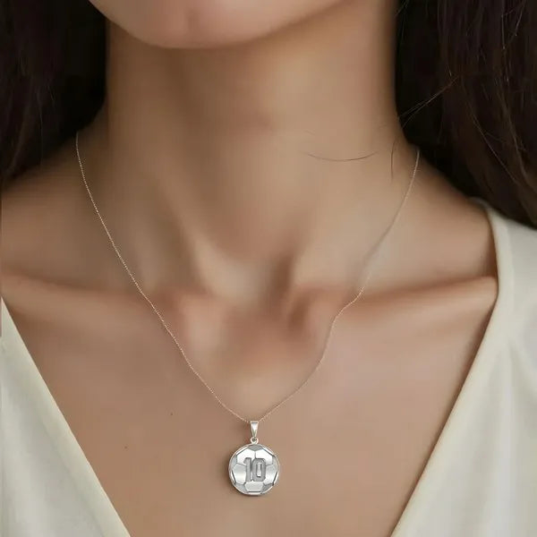 Sterling Silver Personalized Soccer Ball Charm Pendant with Number
