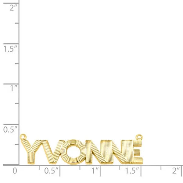 Add a touch of elegance and texture to your personalized jewelry collection with our 14 Karat Fluted Name Necklace. This distinctive custom name necklace features a beautifully detailed fluted design, giving the letters a unique, textured look that adds depth and sophistication. Available in your choice of Yellow Gold, White Gold, or Rose Gold, this piece exudes luxury and personal style.